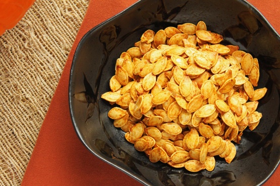 Place the seeds on a baking tray and drizzle a little olive oil over (or melted butter). Toss them in salt and any other herbs you fancy. You could try garlic powder or cajun seasoning. Leave them in the oven for 45 minutes stirring now and then, until golden.