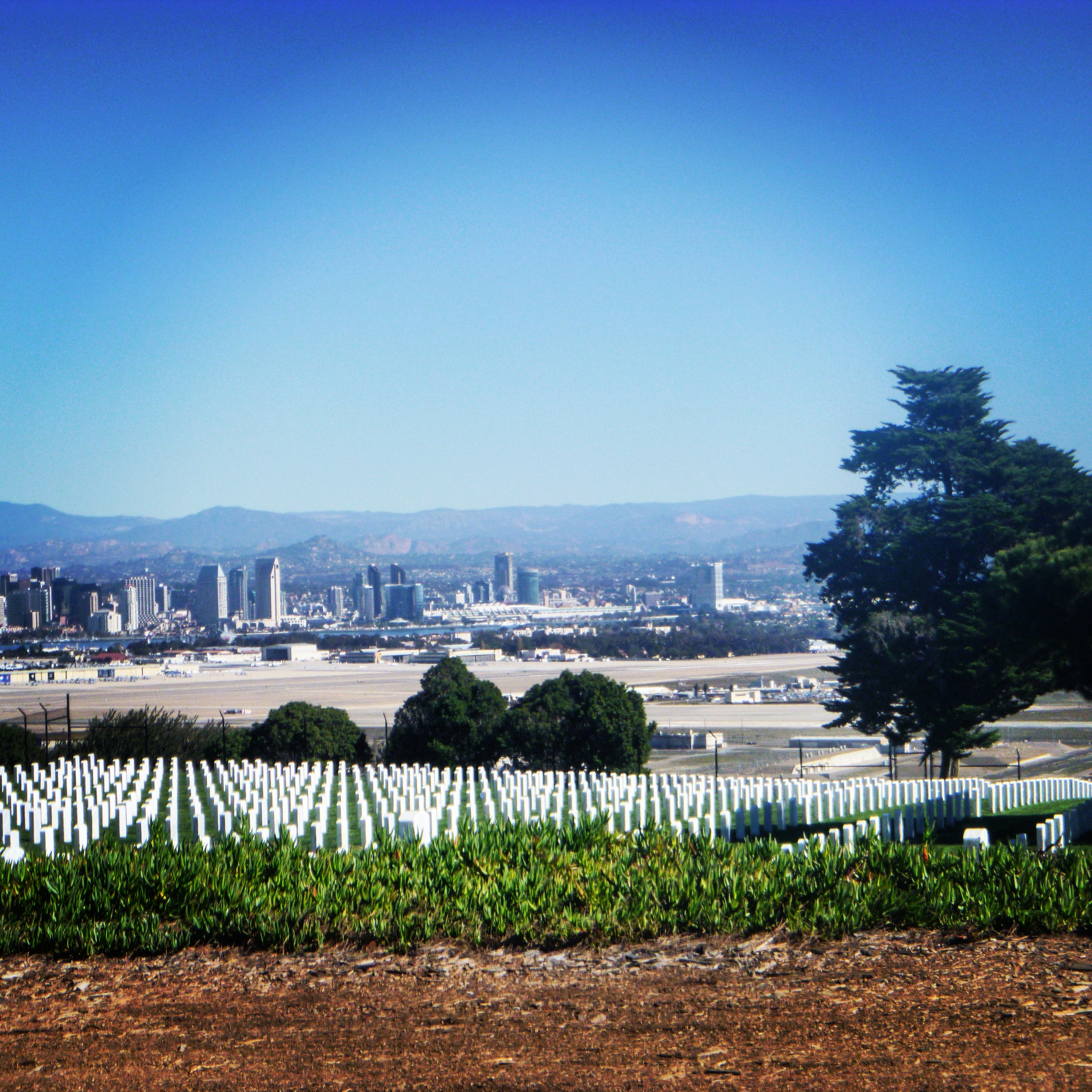 Next, I passed the navy region, where there was a neat, well groomed, symmetrical graveyard. It was very well looked after – sprinklers watered the grass between the tomb stones (there is a draught in California so this astonished me).