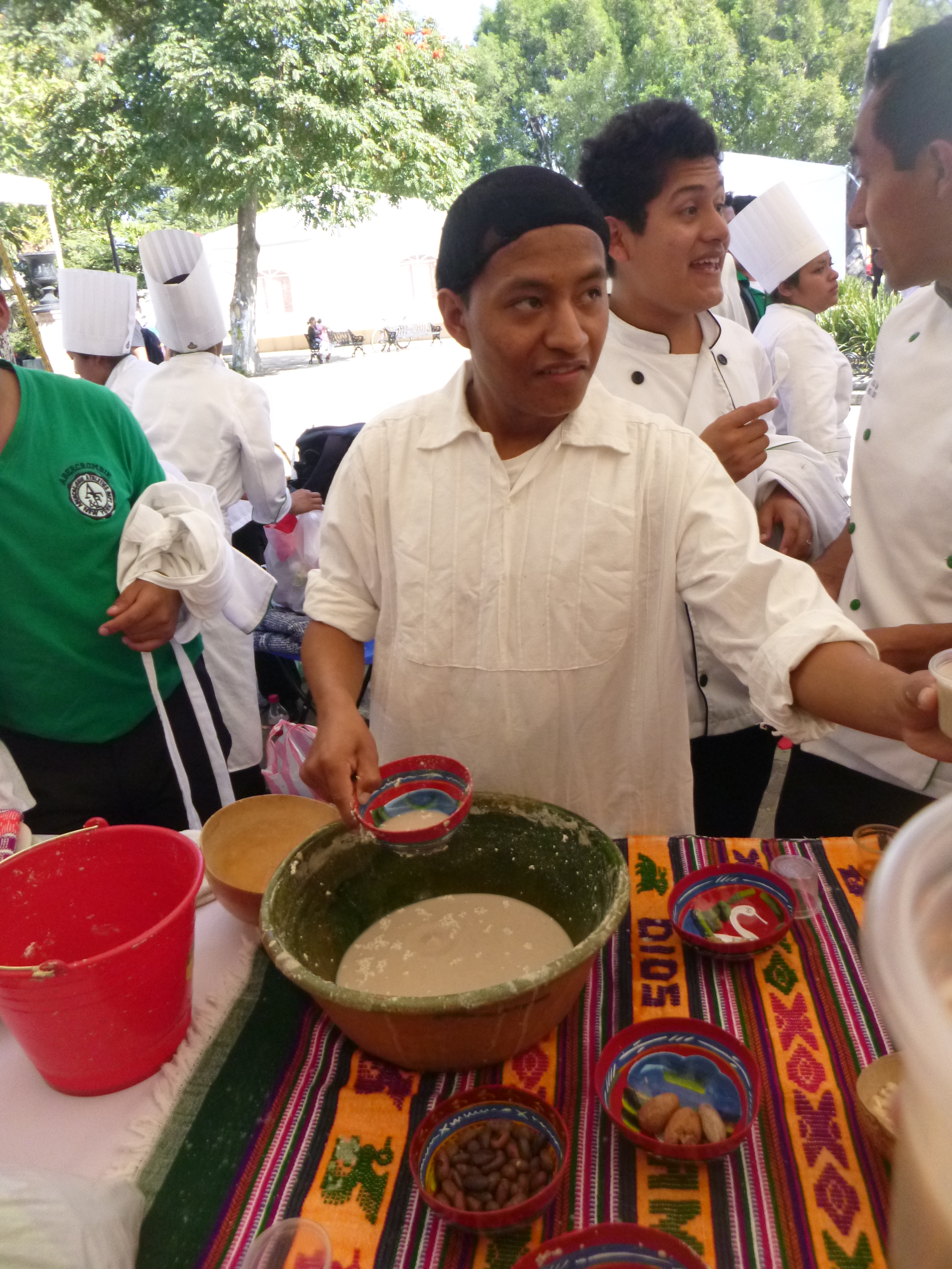 Mexican breakfasts are rather big. The hostel provided, scrambled eggs and bean tortillas. They were the perfect fuel for the day ahead. I began by walking with my friend from Paris around Oaxaca. There was a food fair going on in the park. Students had cooked all kinds of different cuisines. We tried a sample of a traditional Mexican drink, made from maize, cocoa beans and seeds. Despite it’s appearance it tasted great.