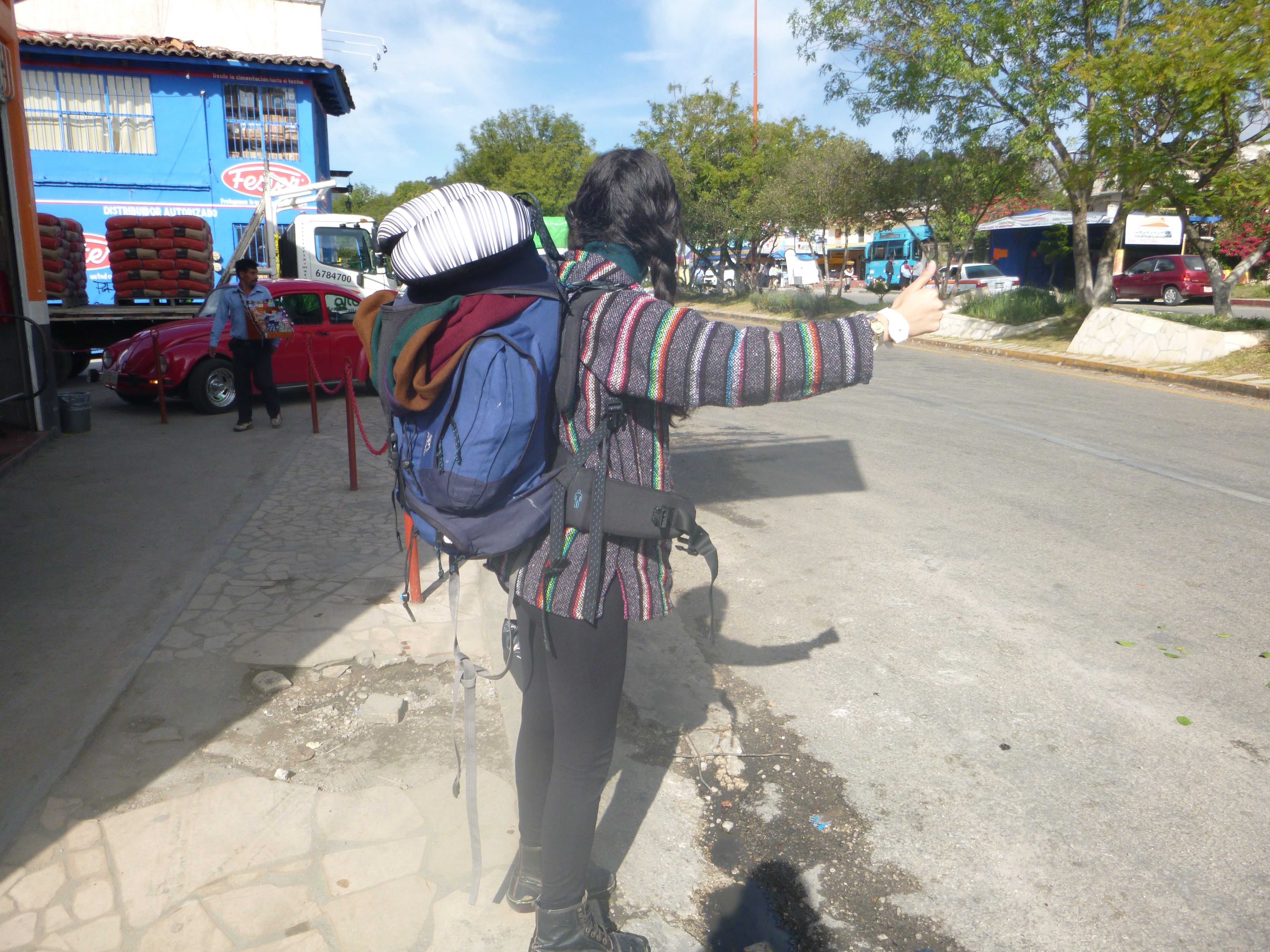 Numerous people had told us that hitch hiking from San Cristobal to Palenque was manageable in 7 hours. Neither of us had ever hitchhiked before and we were up for the challenge. We stood on the correct road with an outstretched arm and thumb up. Lots of people made eye contact, waved or just laughed at us with our huge rucksacks. We had no idea what we were doing, where to stand or who to trust. All we knew is that we needed to get into the national park jungle in Palenque before 4.30pm otherwise the gates would be shut. After an hour of standing in the harsh sun it was time to give up and take the bus. I was proud that we tried but ready to sit down and take my pack off. We took a communal taxi followed by another taxi bus. Driving through the forested mountains was incredible. The hills rolled on for want seemed like n eternity. We stopped in many poor mountain villages to pick up and drop off passengers. Each time a young child or adult would pop their head round the sliding bus door and try to sell some food (plantains or sandwiches). The scenery was beautiful and the houses so basic. Huts with corrugated iron roofs homed entire families. Along the road children sat, playing and watching us pass. I wondered why they weren’t at school or indeed if they had a school they attended. It is such a different way of life in the Mexican mountain villages, the struggle to survive was really apparent.
