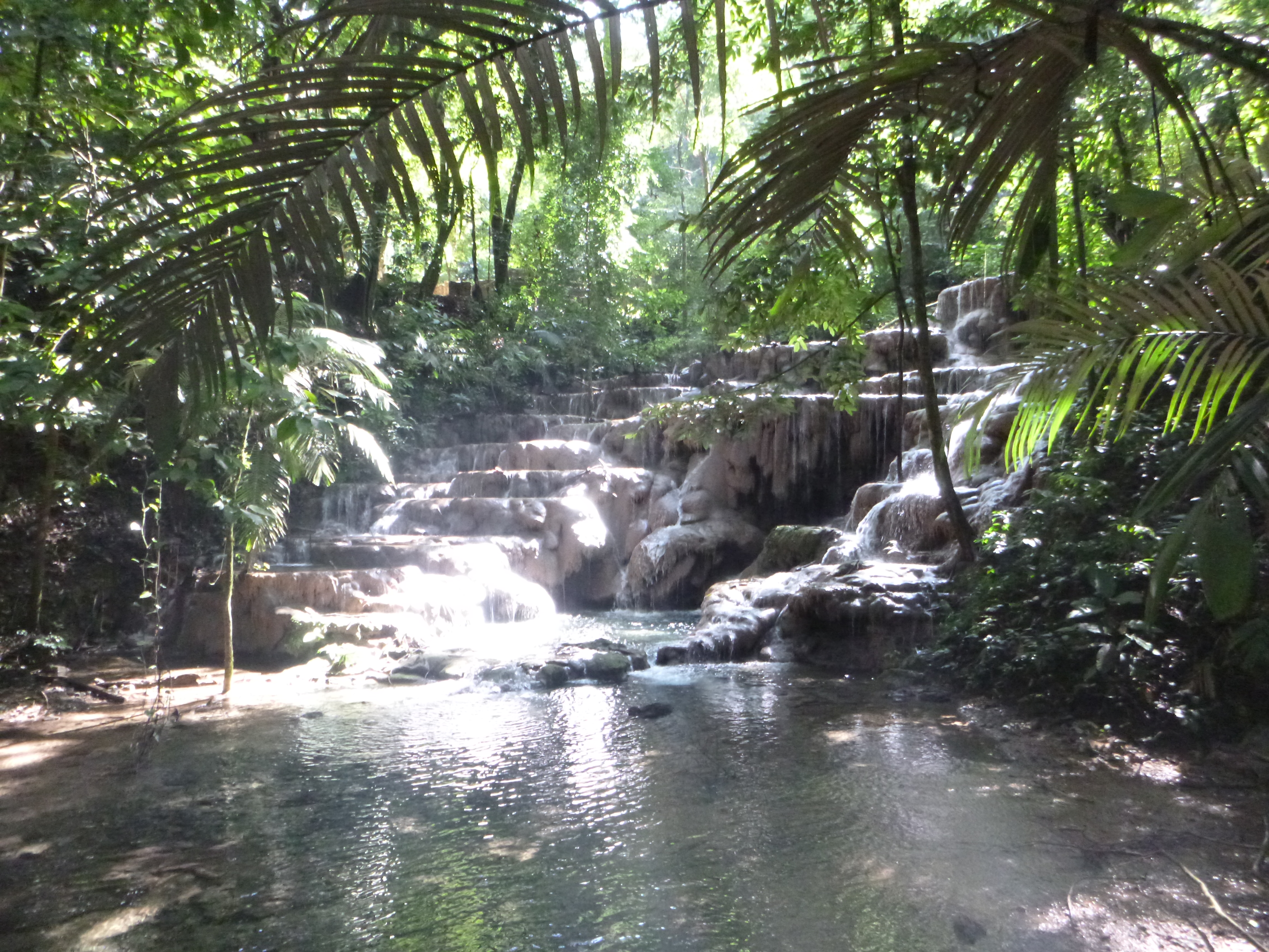 On exiting the ruins we bumped into our yoga friend who told us about some quiet water falls we should go to. We found them and jumped in. It was so refreshing to be emerged in crystal clear, cold water, surrounded by the shaded forest canopy. It was so much fun. A while later a man started shouting at us to get out. Apparently, swimming is not permitted. We later found out we went to the wrong waterfall – this one was a tourist visiting point. Probably not the best place to jump in. Nonetheless, I was not bothered, it felt so good to cool off.