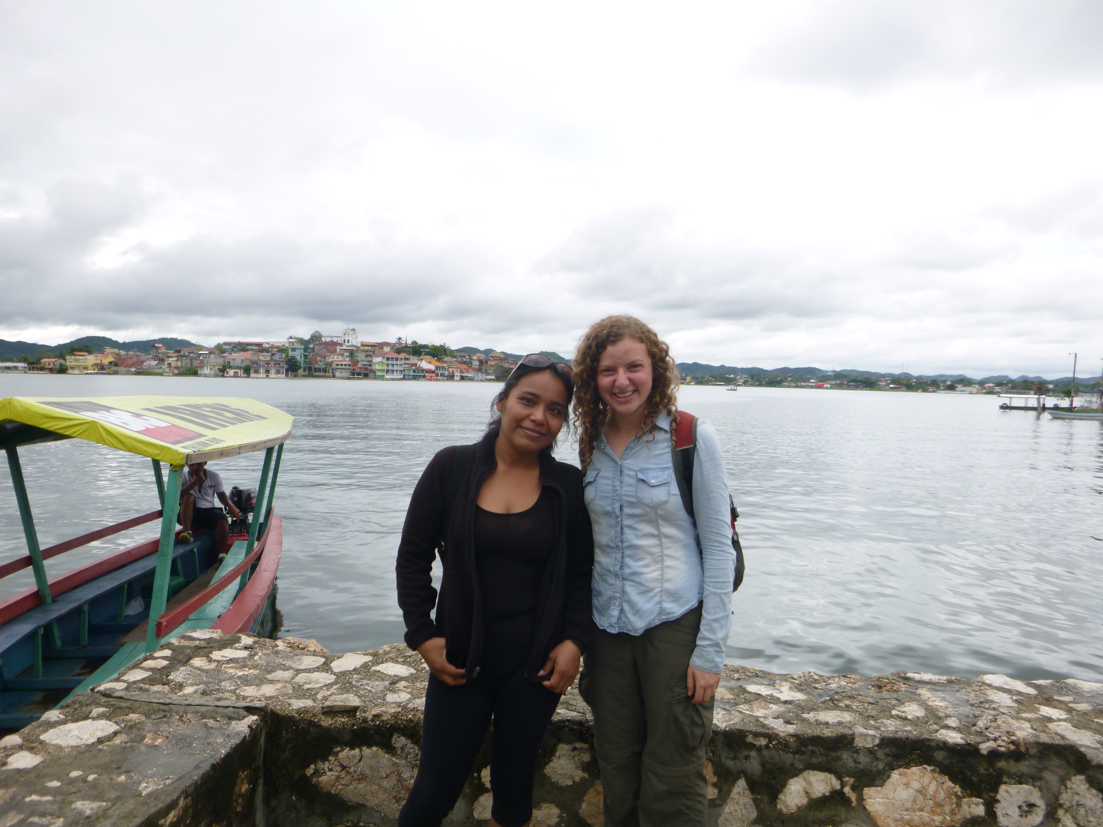 I took a launcher (boat) across from the island flores to a sister island. It only took 5 minutes or so. Someone had previously recommended me to find a mirador (view point) on this sister island. I walked along the waterfront looking at Flores in the distance, although it was a grey day it was beautiful. The colourful Flores houses were a phenomenal contrast against the bleak sky. After asking a couple of Guatamalans for directions, climbing up numerous stone stairs and hiking through the jungle I found the mirador. I ascended up the watch tower and got an even better look at Flores. While, on the high up platform, I met two people also enjoying the view. One Guatemalan hostel worker and a fellow America traveller. We spoke in Spanglish. The Guatemalan lady said that she understood my Spanish well. I was super pleased with this comment. I still need a lot of work but I think I might be improving. I even managed to translate Spanish to English for her American friend.