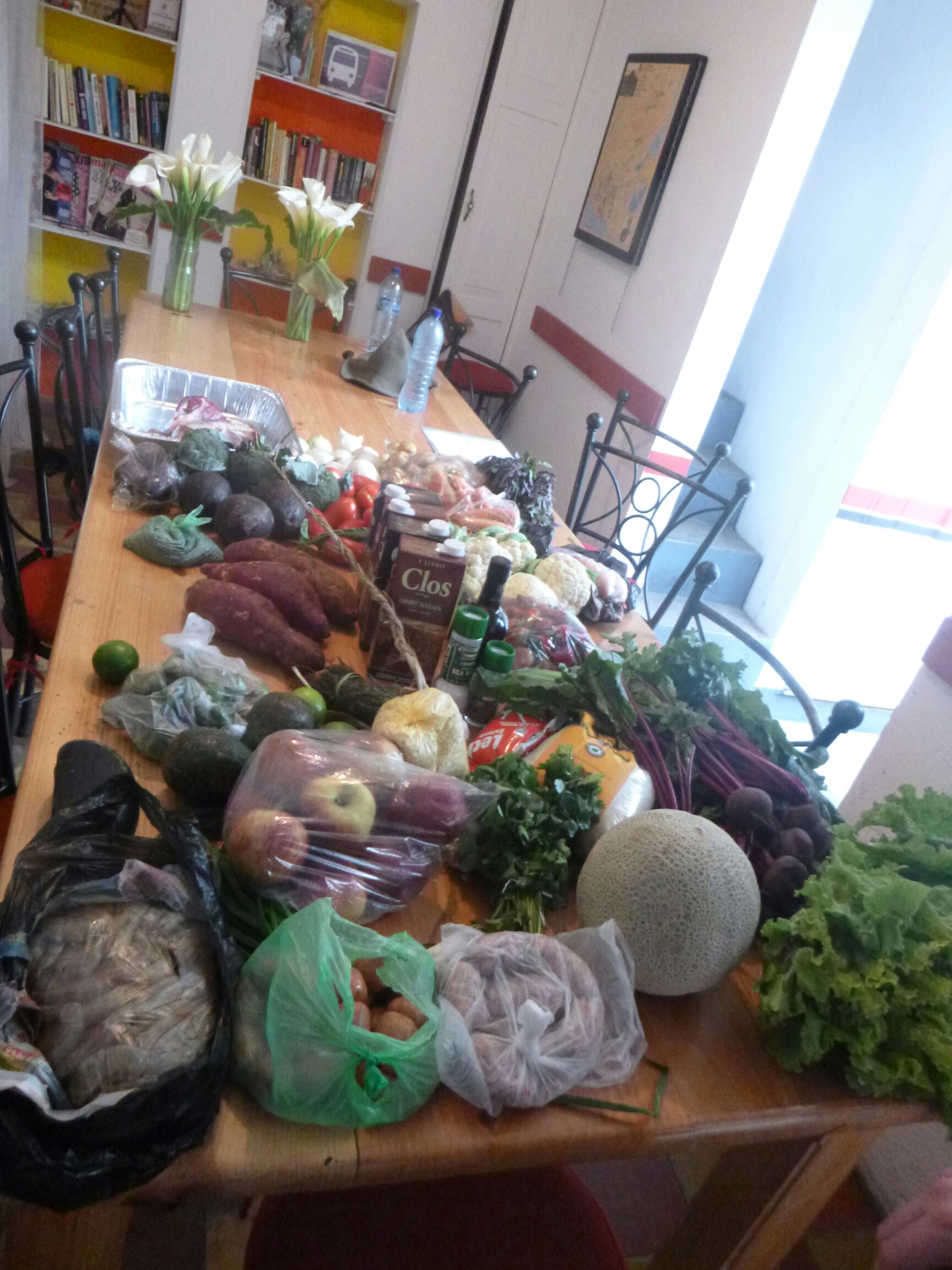 We bought tonnes of fruit, vegetables, meat and seafood for our Christmas eve hostel community dinner.