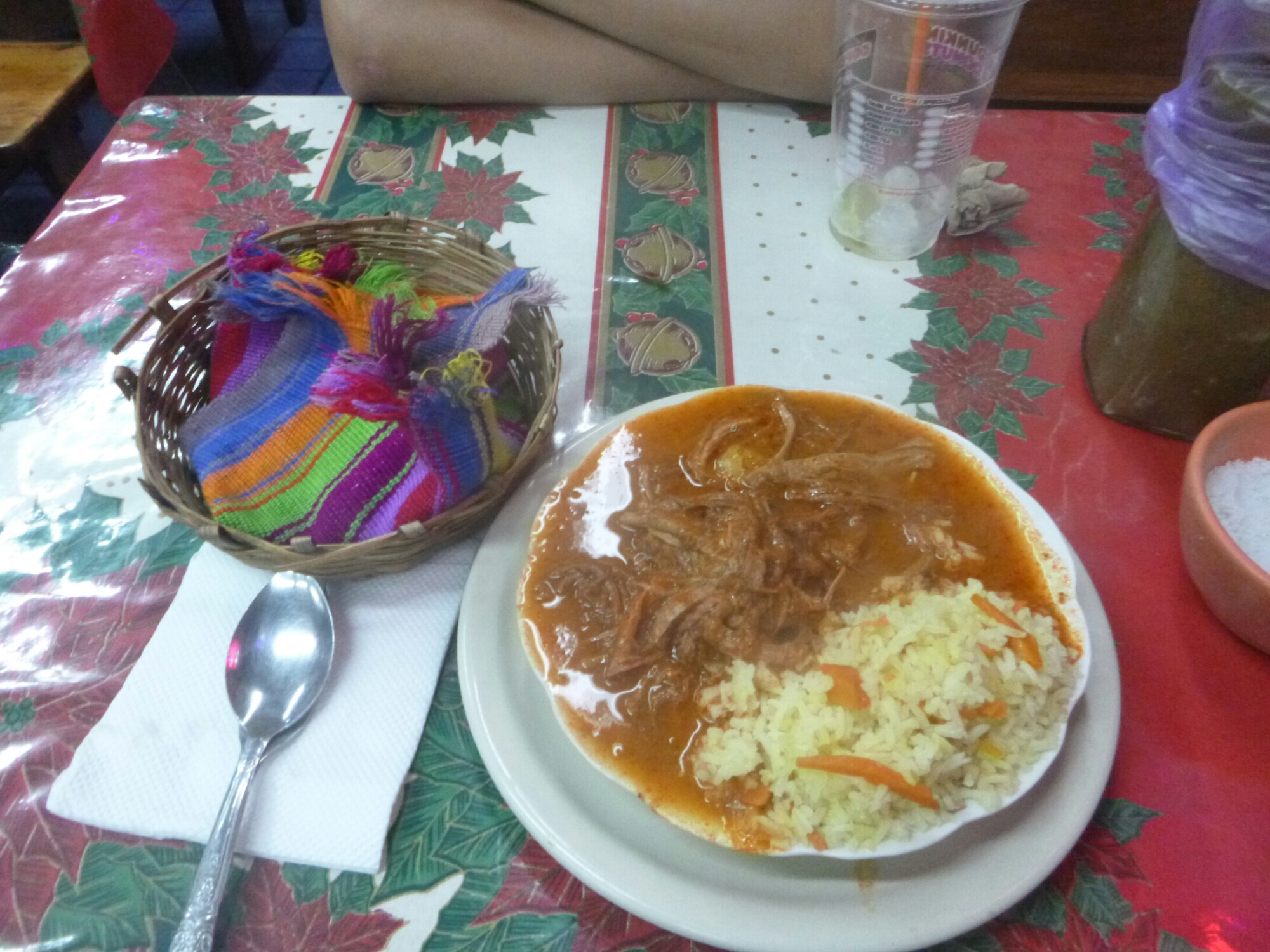 We went to a fun fair park and had a quick go on the slide. My host then informed me that his uncle was vice president of Guatemala – truly astounding. Next we roamed around the colourful, vibrant and fun market. I tried some traditional Guatemalan food (a meat stew soup with rice), which was super tasty.