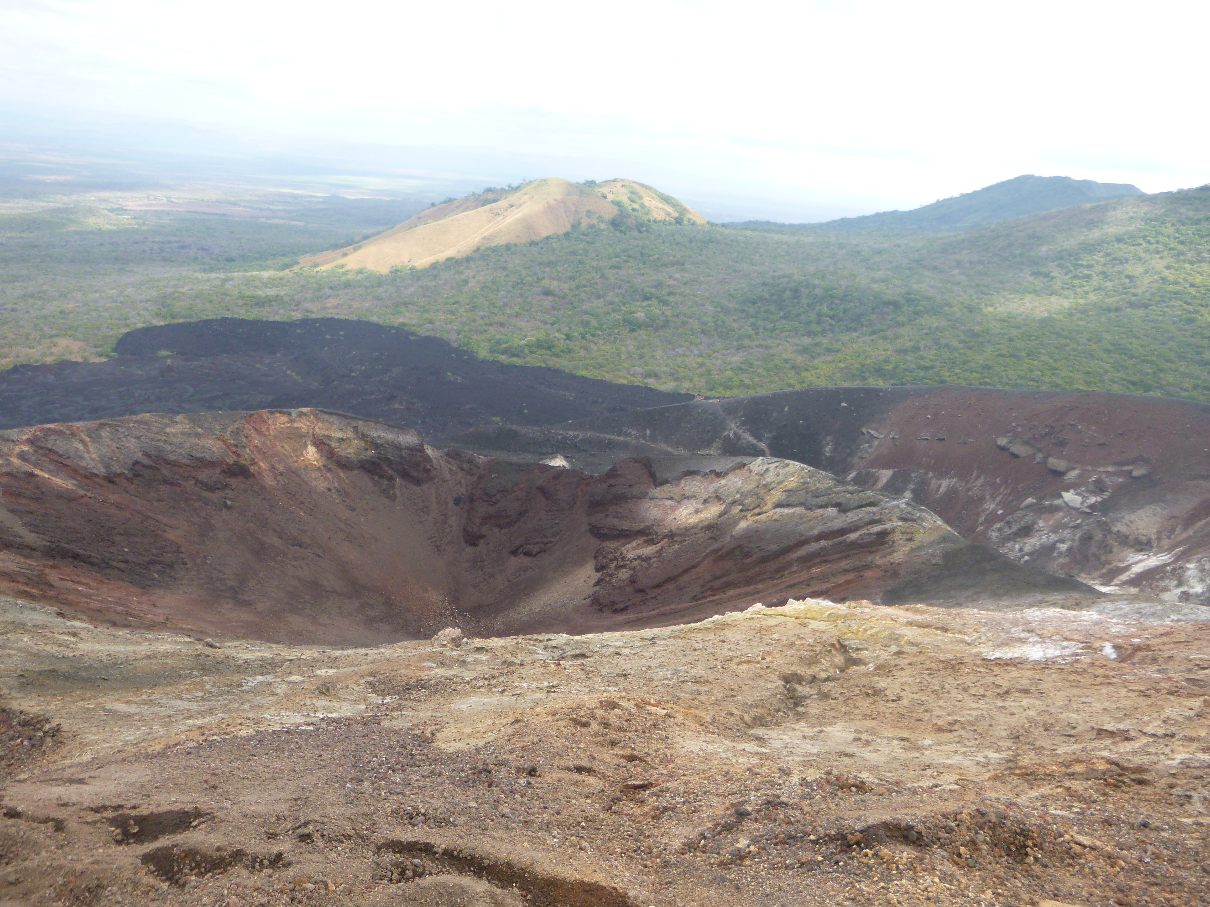 The drive to Cerro Negro was bumpy to say the least. Five of us crammed onto the back of a worn down truck. On arrival we glanced at the grand, grey, geographical wonder and began the arduous climb up. It took around an hour and was 5 km far. While, the walk was very manageable the heat was pretty strong. It was one hundred percent worth it for the surrounding scenery which was phenomenal. We were blessed with a blue, clear and cloudless sky – you could see for miles around us. Volcanoes, mountains and hills shaped the landscape. Some were covered in forests, while others were white from being coated with sulphur. Many colours were present, red iron rich sands, chocolate brown mud and dusty grey volcanic ash.