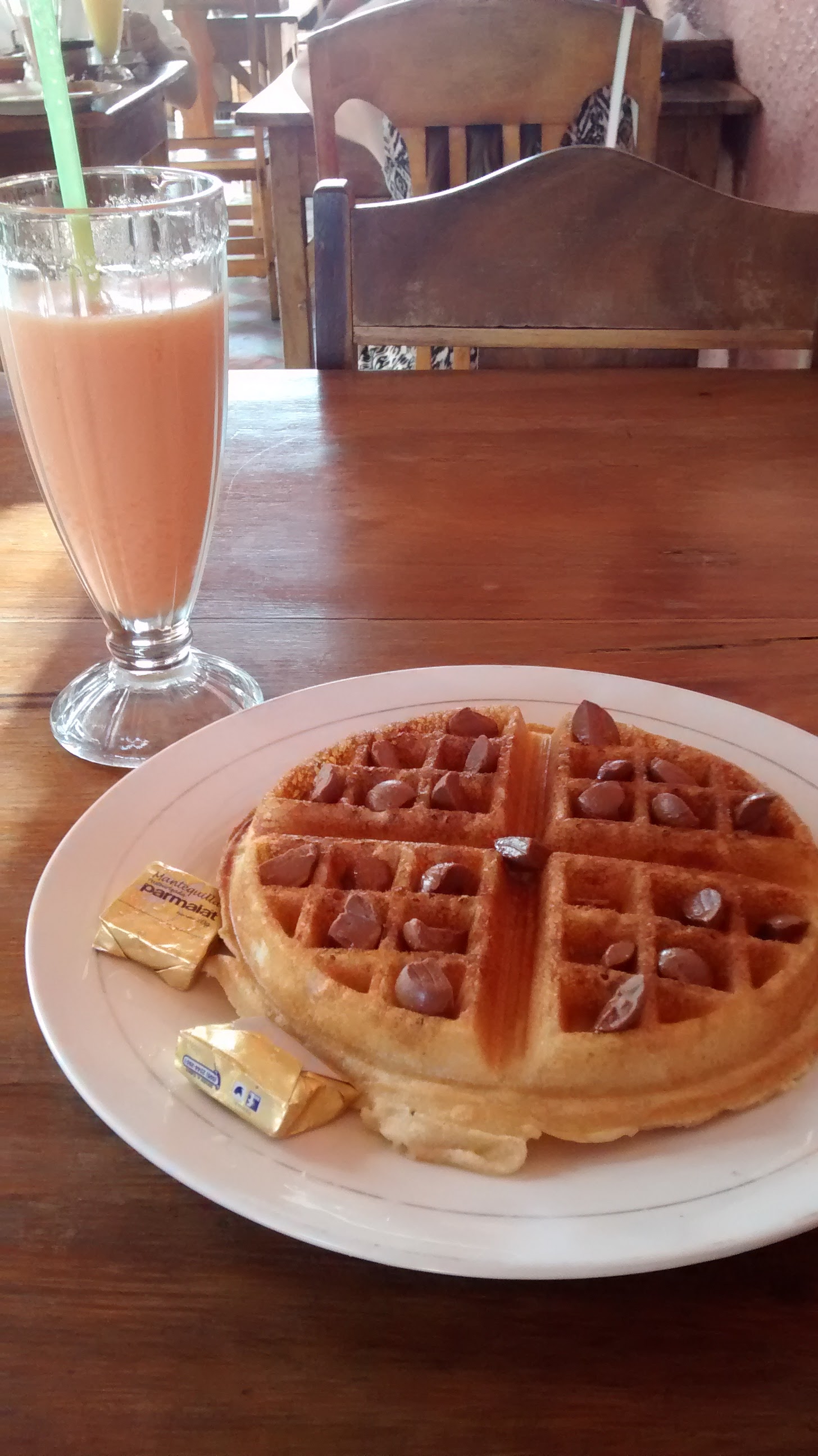 As well as enjoying the views in Granada I have indulged in some home comforts – well sort of. Eating rice and beans does get tiring so I have sampled some American food – which has been a breath of fresh air. I found a touristy waffle house for breakfast. Here I still used my Spanish – as I am keen to keep practising but on the tables around me I heard America English and American Spanish – ‘two aguas please’. It made me giggle and revel in hearing a language which I fully understand.