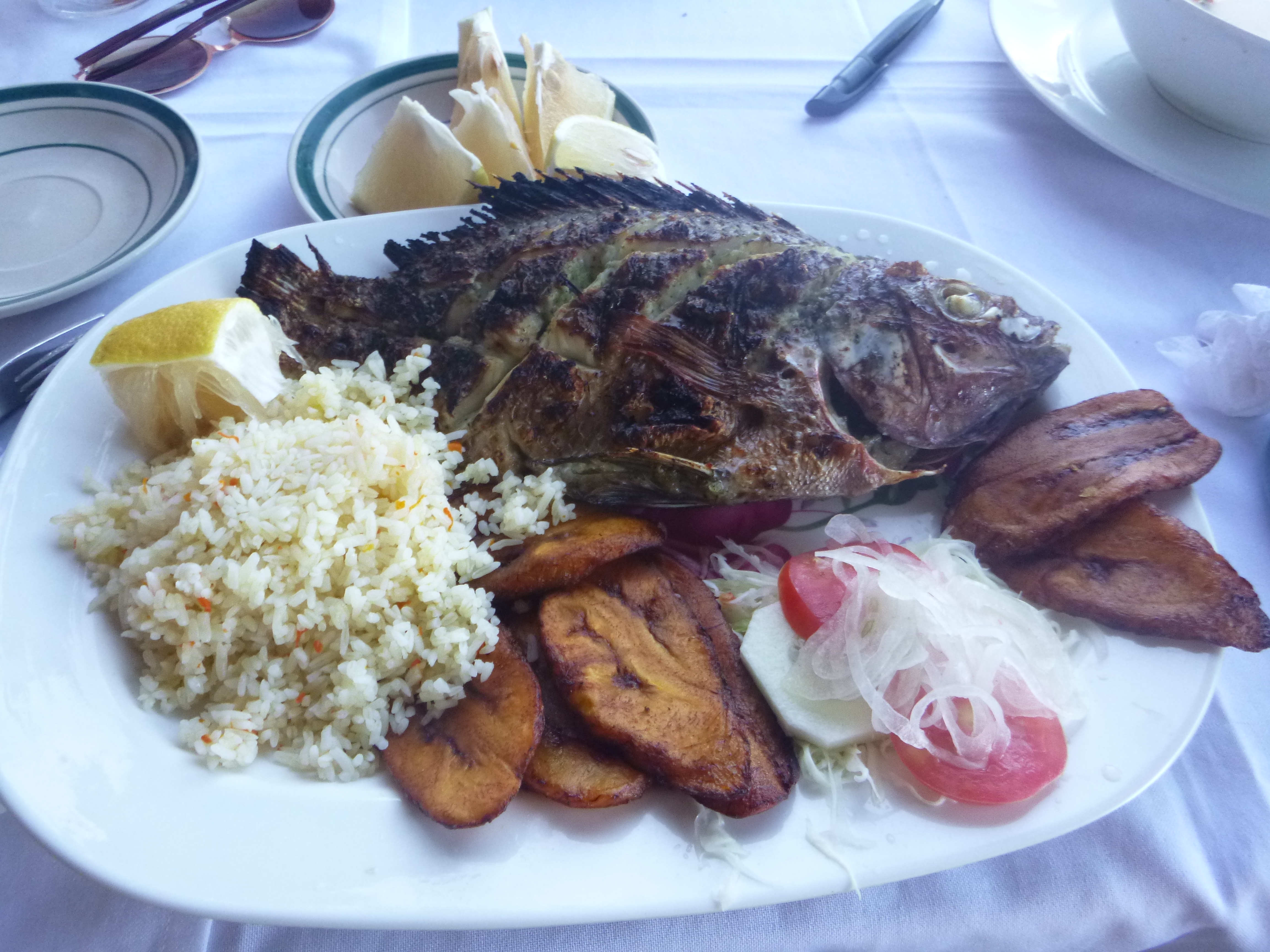 We stopped for a fresh fish lunch, which was very tasty. Of course it was served with rice and I chose the typical fried plantains (my favourite central America delicacy). It was a fantastic meal. We were lucky enough to have a great view while enjoying our tasty food. The beach was very tranquil.