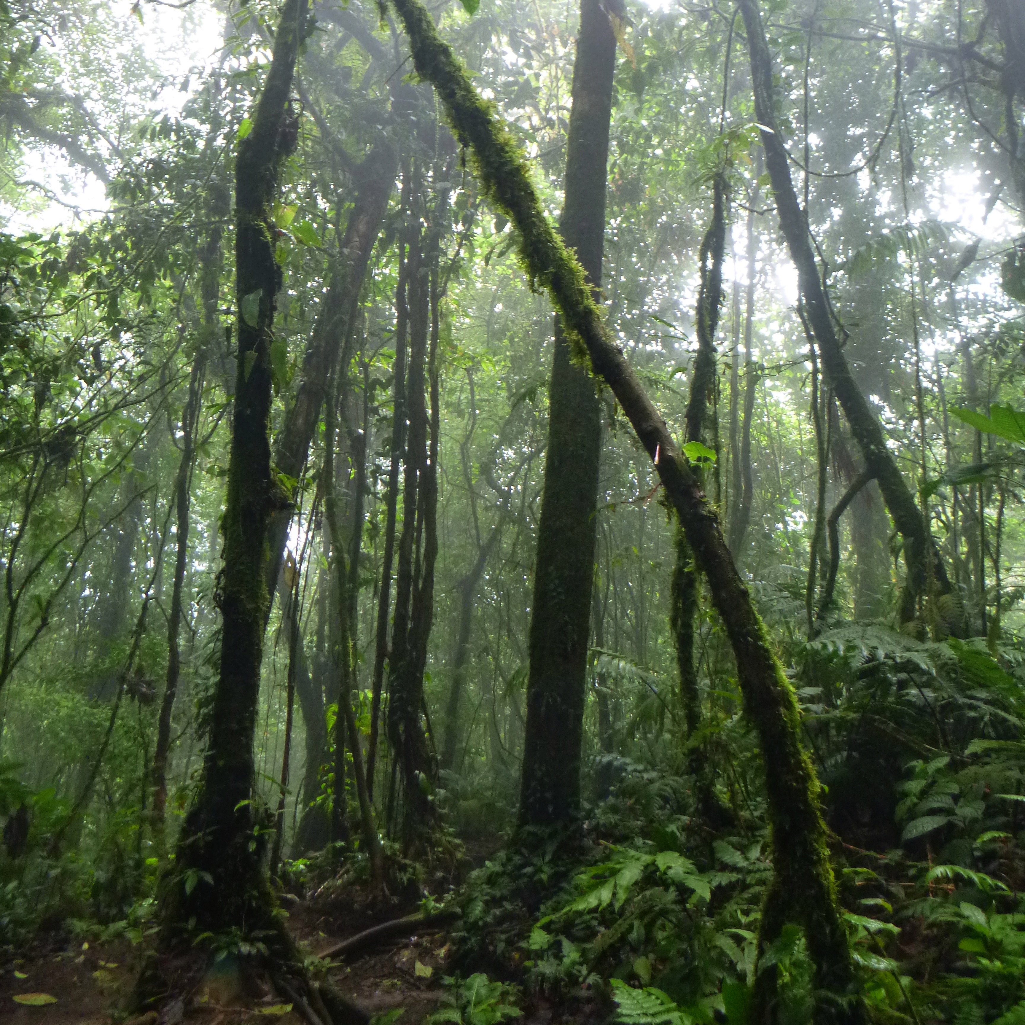 We began our steep climb up, walking on fairly easy terrain, looking over the foggy mountains. Next, we reached the mystic, misty, miraculous cloud forest. It was absolutely beautiful. The trees were tall, intricate and unique. Their roots so elaborate, extensive and impressive, you could not help but stare at them following their path into the muddy soil. Looking up from the impressive roots to the tree bark, green furry liannas covered the tree’s trunk and draped like decorations from branch to branch. The leaves protected us from the rain, so I felt only drizzle against my warm face.