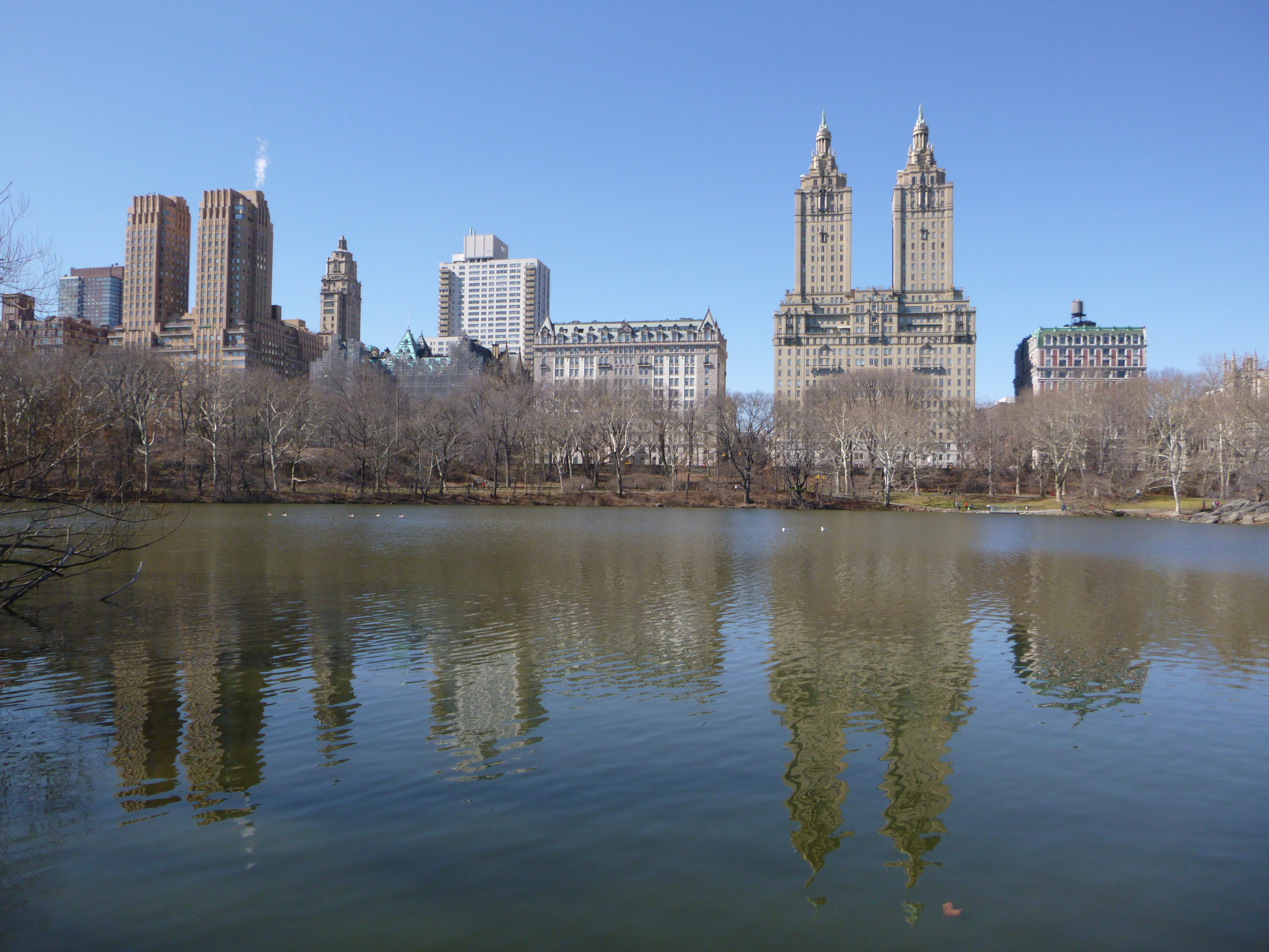 I walked from the apartment to Central Park. As I stood outside the cold hit me like a slap in the face. The best option was to keep walking and very fast. That was easily done as everyone in cities rush around like maniacs – I fitted in just fine. I walked to the visitors centre in the park to find out the best route take. They had an interesting exhibition on about the history and conservation efforts employed in the park. Central Park’s purpose is to provide a relaxing, calm place away from the busy city for citizens to enjoy, with wildlife and fresh water reservoirs. Walking around, I believe that central Park met these goals. Numerous people were running, walking and biking. Some in groups others alone. I walked around lakes, reservoirs and ponds high all had stunning backdrops of the city.