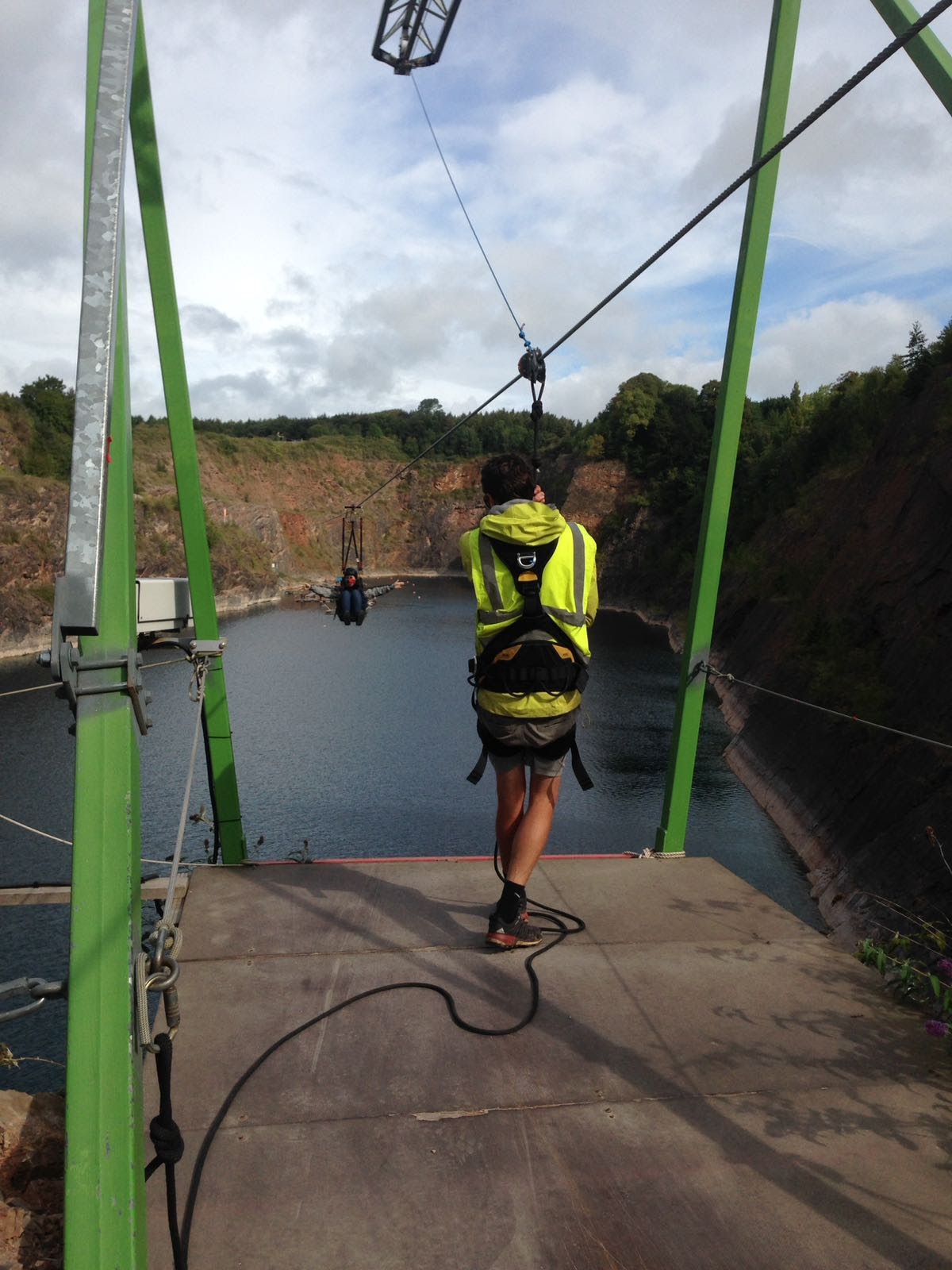 Next on the agenda was the zip – line. This took us across the flooded quarry.