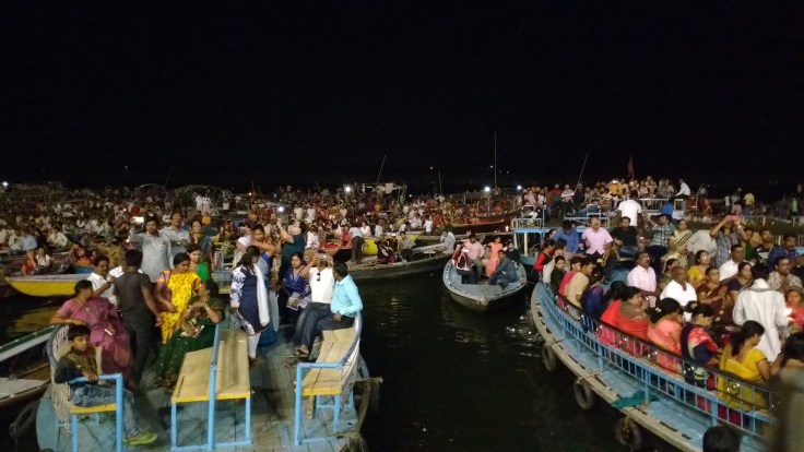 Many people watched the ceremony from a swarm of boats while others sat on the banks, like us.