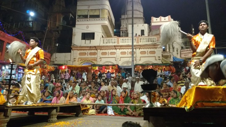 We were just in time for another aarti ceremony at 6.30. It was very impressive. The young priests dressed in bright orange robes lifted up a series of spiritual instruments. They blew a horn at one point. They must have trained for a long time to be able to do it.