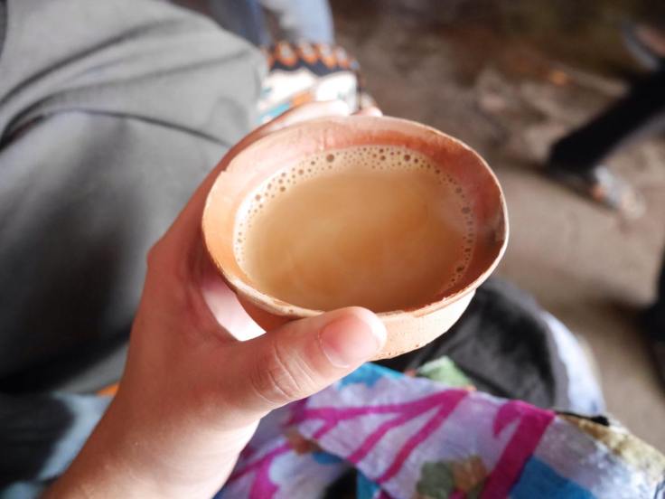 We had a Chai tea break which was very much needed. In many places chai is served in mud cups that are made by farmers in the countryside. You can taste the clay in your tea – part of the charm. Once finished you bin or smash the mud cup on the street. It shortly returns to earth after being run over by vehicles and trampled by cows. Chucking your cup gives good karma because the farmers will then stay in business as there will be a demand for more cups to be made. Per cup it costs just 1 or 2 rupees (a couple of pence).