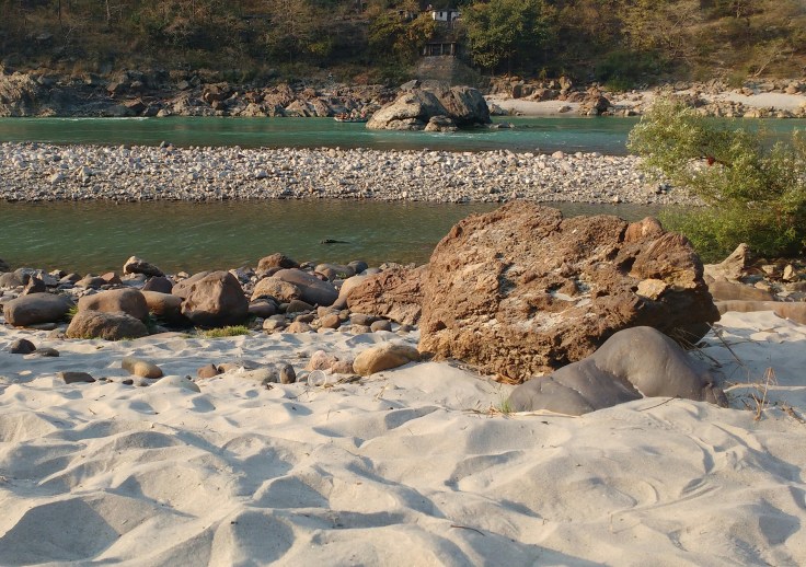 Shiny white sand lined the Ganges River. It must have been due to the erosion of quartz stone.