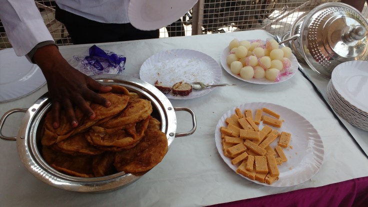 On the drive back we stopped for a sugar cane juice and some Pani Puri street food. The sweet water was very refreshing. Pani Puri is a crispy, hollow pastry filled with beans, spices, sweet mango chutney and is covered in yoghurt. You put the whole thing on your mouth in one go. First you can taste the sweet fruits, then the spicy flavours kick your taste buds. Lastly the soothing yoghurt settles all the seasoning.