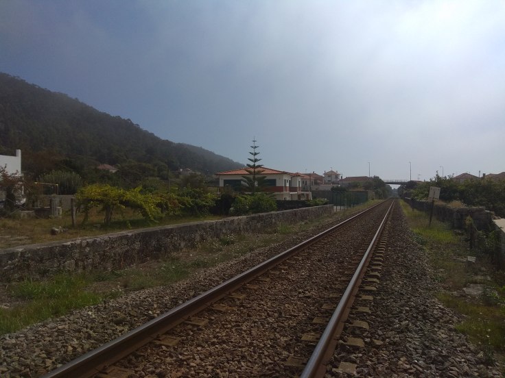 We passed a railway track, walked down a hill and spied a cafe offering a pilgrim’s menu. This was a couple of hours into the day’s walk. We were not hungry but weren’t sure where the next break would be so we stopped for fried fish, rice and salad costing €6 – very reasonable.