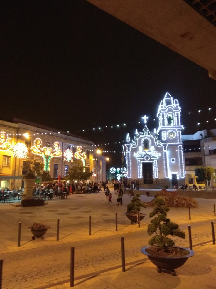 Showering made me feel a million dollars. Next it was time for food. We had a pretty average salmon dish from the restaurant next door. Costing €8.50 euros we couldn’t really complain. The waiter said they didn’t offer desert – how silly. Instead we walked through the town to find a pastry shop. We stumbled upon a festival. Singing, dancing and traditional food was being served. The church had been lit up. We enjoyed some surgery treats while soaking up the atmosphere.