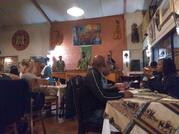 Opposite our hotel was Marco’s African Restaurant serving local food. Sitting down the decor was beautiful. Traditional art hung on the walls. Tucking into a lamb stew with beans and potatoes we listened to musicians play the xylophone.