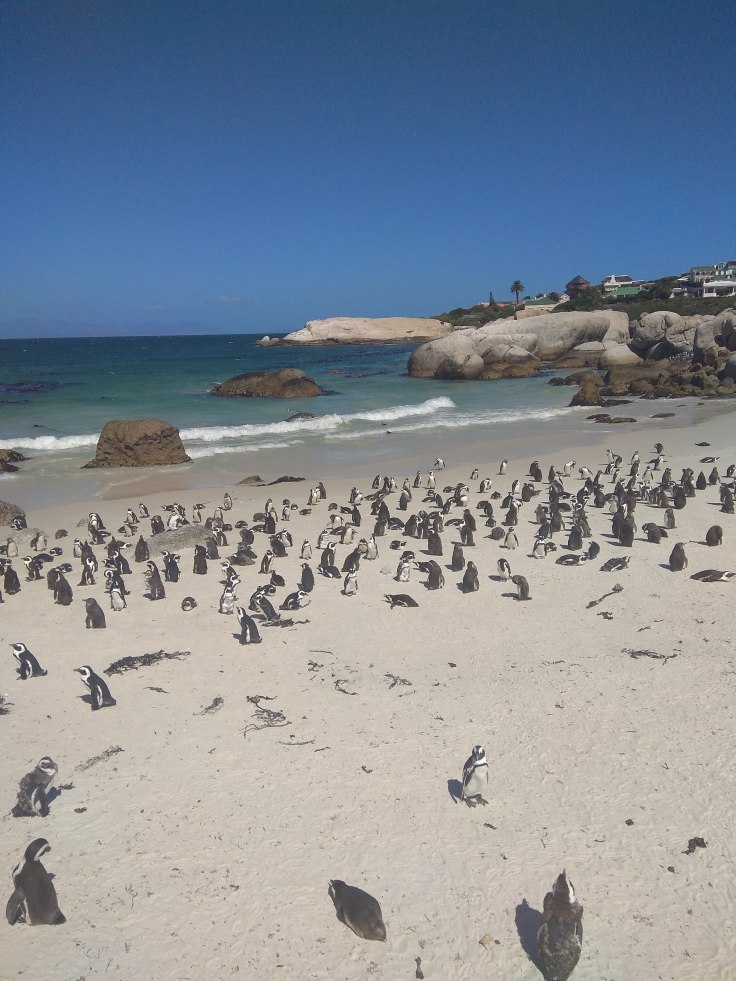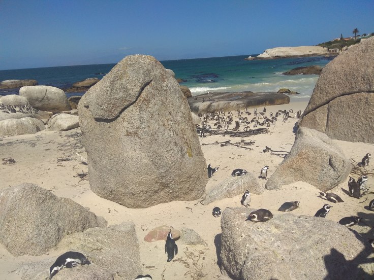 Believe it or not, South Africa is home to penguins. Found only on the South Western coast of Africa we were very lucky to see some. Our bus stopped at Boulders beach. To enter you pay 152 rand or 160 rand if you buy the ticket from the sightseeing company. When you pass the barriers it is possible to see flocks of Penguins bathing in the sun. A few were molting their feathers an event which happens annually during the summer.