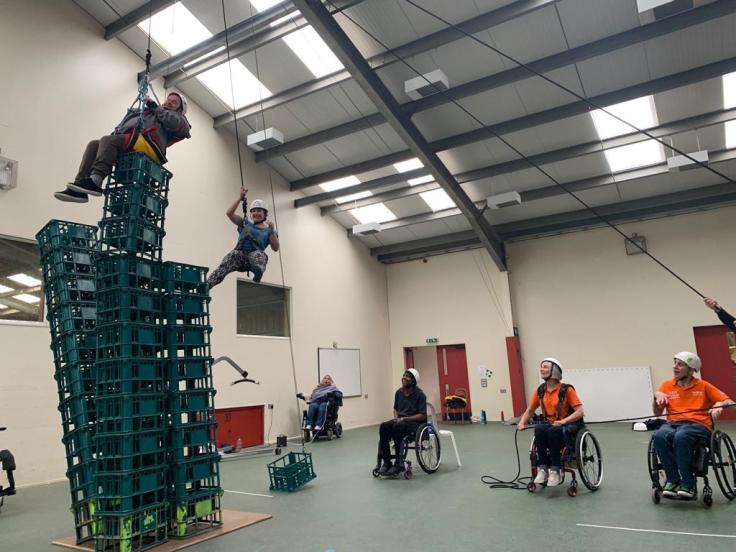 The session sped by and before we knew it we were having lunch and getting ready for accessible abseiling. Transferring into a sturdy harness and wheelchair it was possible for participants to roll off the side of a vertical wall. Able bodied volunteers would go down at the same time assisting.