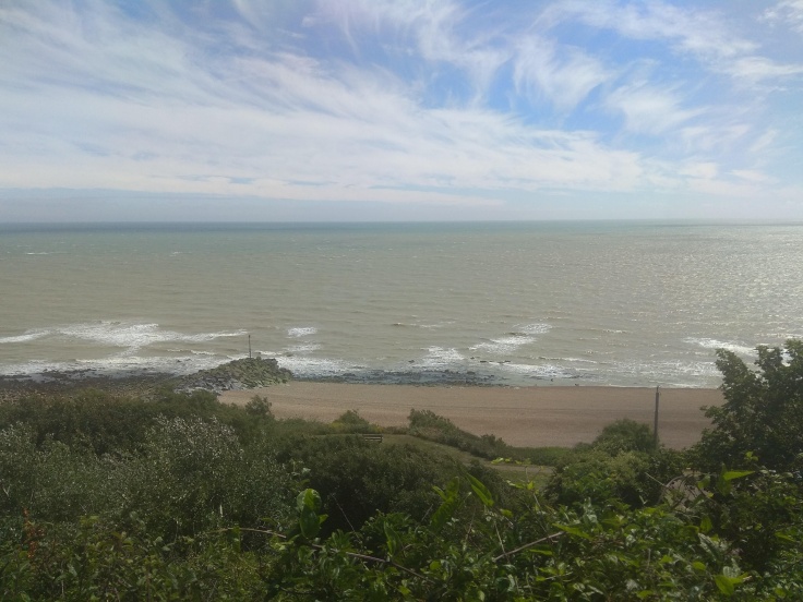 We were cycling along the coastal path in Folkstone. White, foamy waves washed up onto the pebble beach to our right. Looking up towards the horizon, wispy clouds danced across the blue sky.