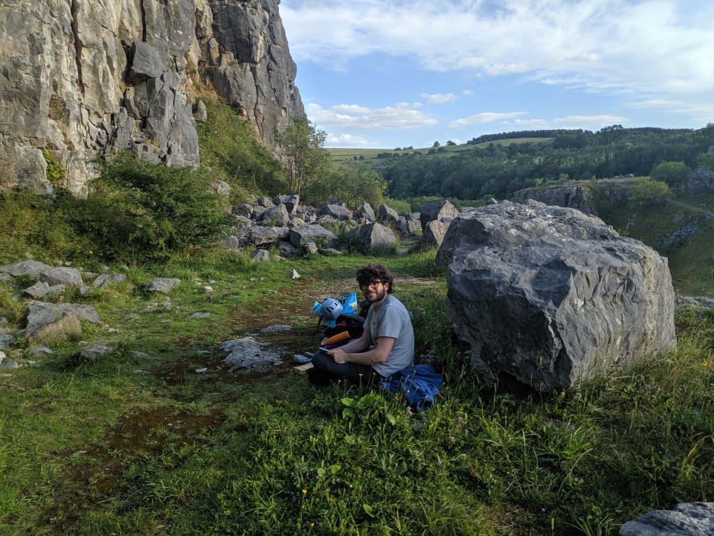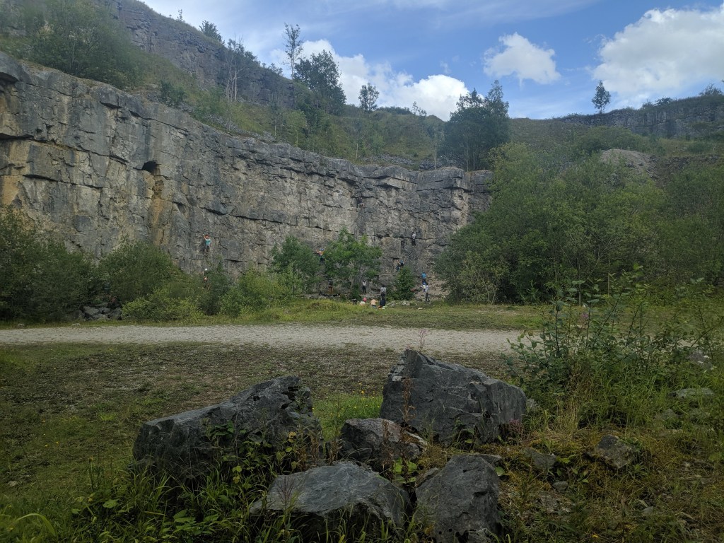 The landscape had been carved by humans. We were in a disused limestone quarry, nicknamed Horseshoe. Straight lines ran around the edge of the rock cliffs, where machines had cut out chunks of rock to use for houses, roads and other infrastructure.