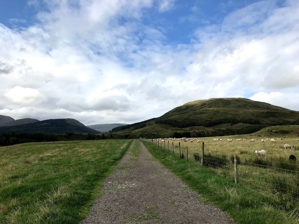Day one from Milngavie to Drymen was easy – fairly flat through parks, farmland and woodland. We conquered 20 km in roughly 4 hours.