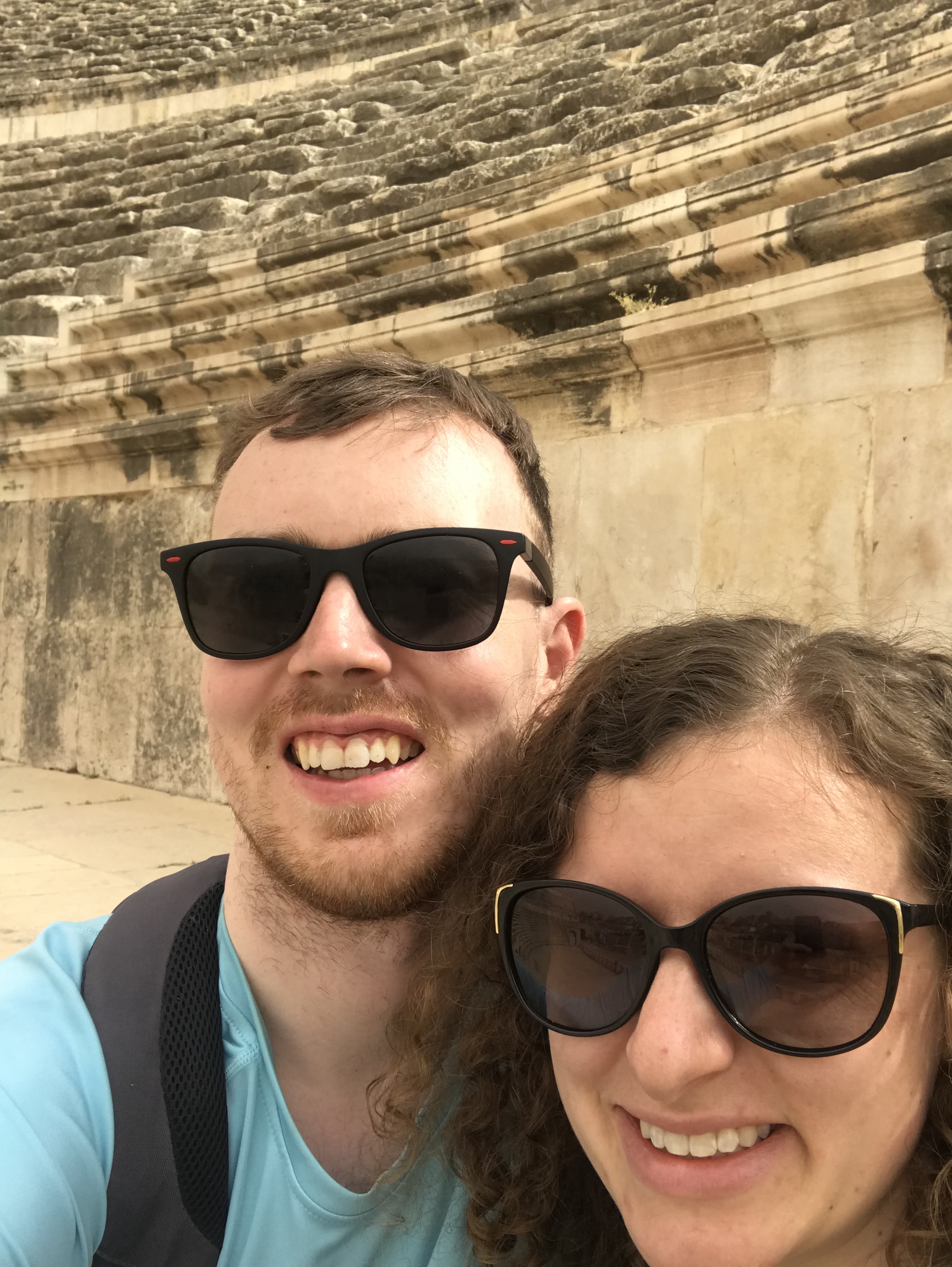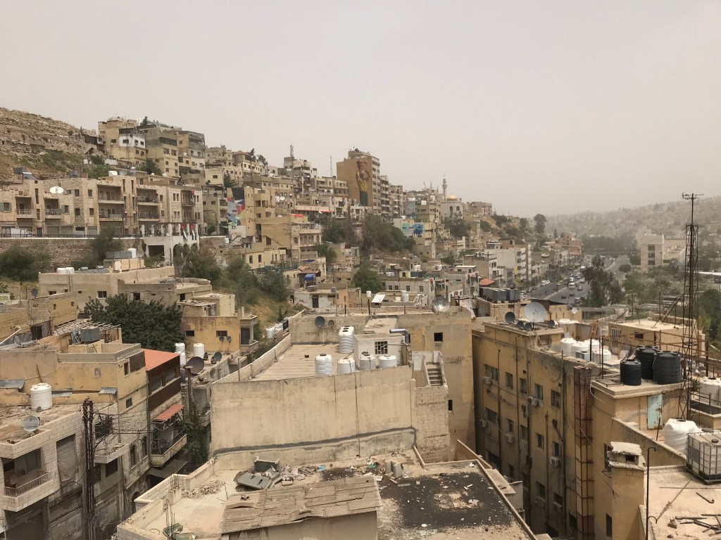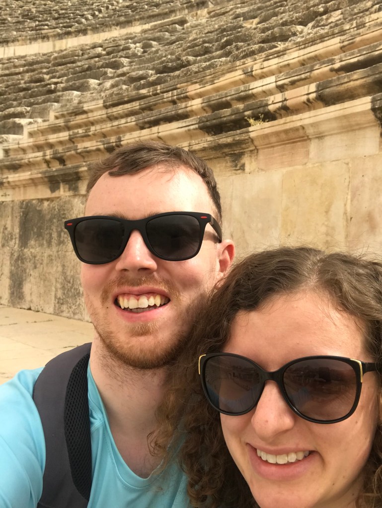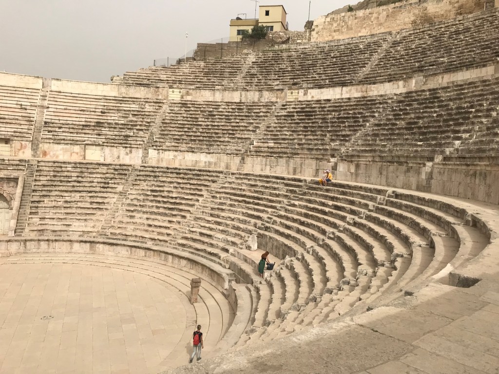 The Eastern part of Amman is home to a Roman amphitheatre built facing the north to protect the audience from the harsh sun. This said, clambering up the steep stairs we didn’t feel too sheltered from the sun but we sat down for a selfie nonetheless.